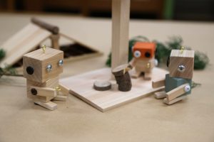 自然素材の良さを感じながら、道具を使って子供たちの想像力を使い、自分だけのオリジナルロボを作ります。